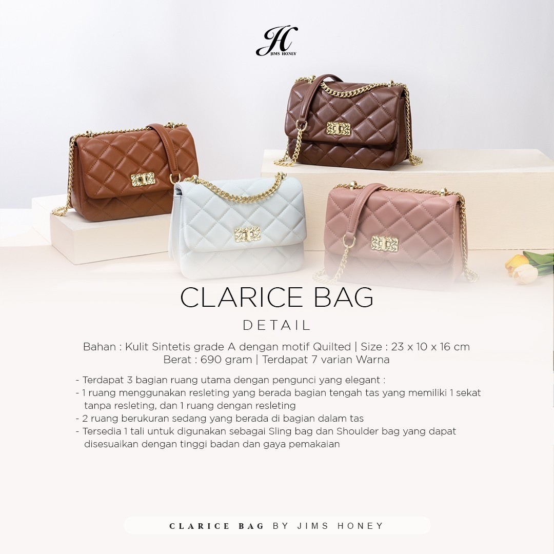 Definisi mewah tapi fleksibel, cocok untuk dipakai formal maupun hangout!! Yuk kenalan sama CLARICE BAG JIMS HONEY????
