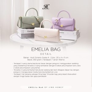 Memiliki pilihan warna yang cerah dan desain yang unik yaitu dengan pengunci berbentuk hati yang siap memikat untuk para penggunanya. Emilia Bag ini adalah cara sempurna untuk mengekspresikan kepribadianmu. Baik dipakai saat jalan-jalan santai atau hangout bersama teman, tas ini akan menjadi sorotan, So, What are u waiting for? go get yours now JHLadies!